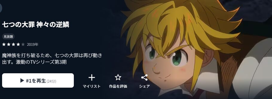 - 1 アニメ『七つの大罪 神々の逆鱗(3期)』を配信しているサブスクまとめ