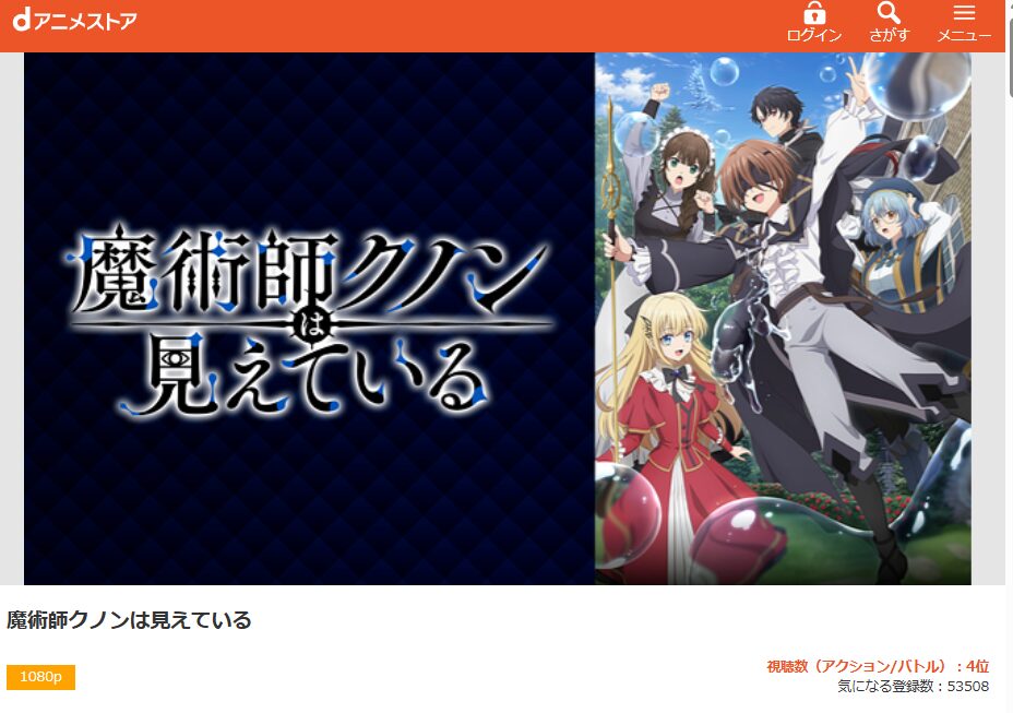 dアニメストアは初回無料お試し期間があり、無料期間中にアニメ『魔術師クノンは見えている』を無料視聴できますよ。