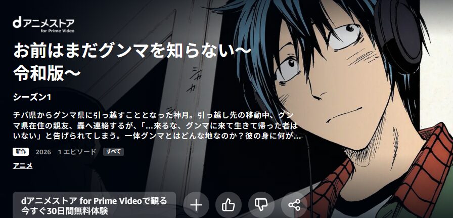 是非この機会にAmazonプライムでアニメ『お前はまだグンマを知らない~令和版~』の動画を無料で視聴してみてくださいね。
