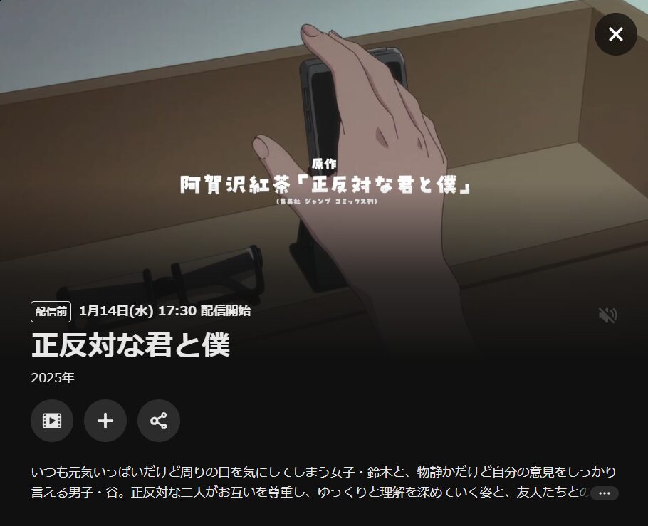U-NEXTで配信予定のアニメ『正反対な君と僕』の動画を全話見る方法