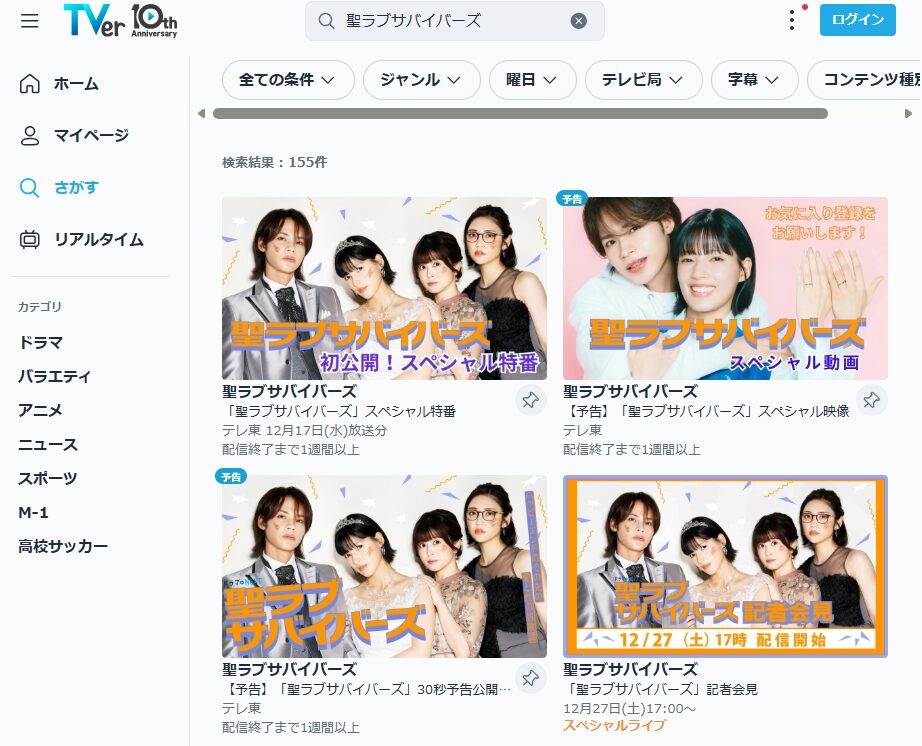 2025年12月現在、ドラマ『聖ラブサバイバーズ』の見逃し配信動画が、TVerやテレ東HPで見逃し配信予定です。
