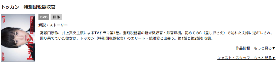 TSUTAYA DISCASでドラマ『トッカン-特別国税徴収官-』の動画を無料視聴
